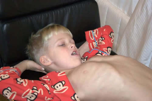 Смеющегося в забытьи мальчишки.