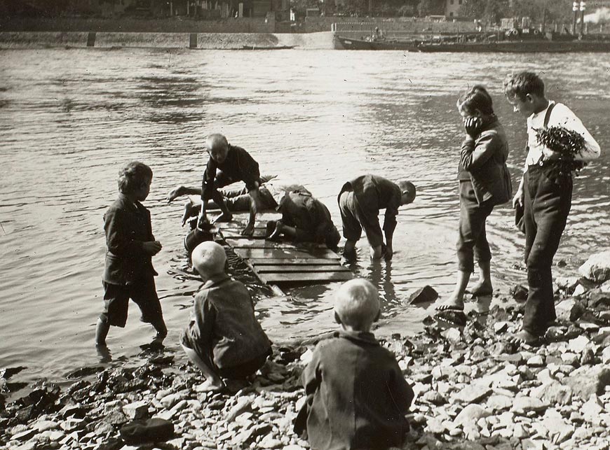 Spielende Jungen an einem Anlegesteg am rechten Elbufer (Мальчики играют на пристани на правом берегу Эльбы), 1891
