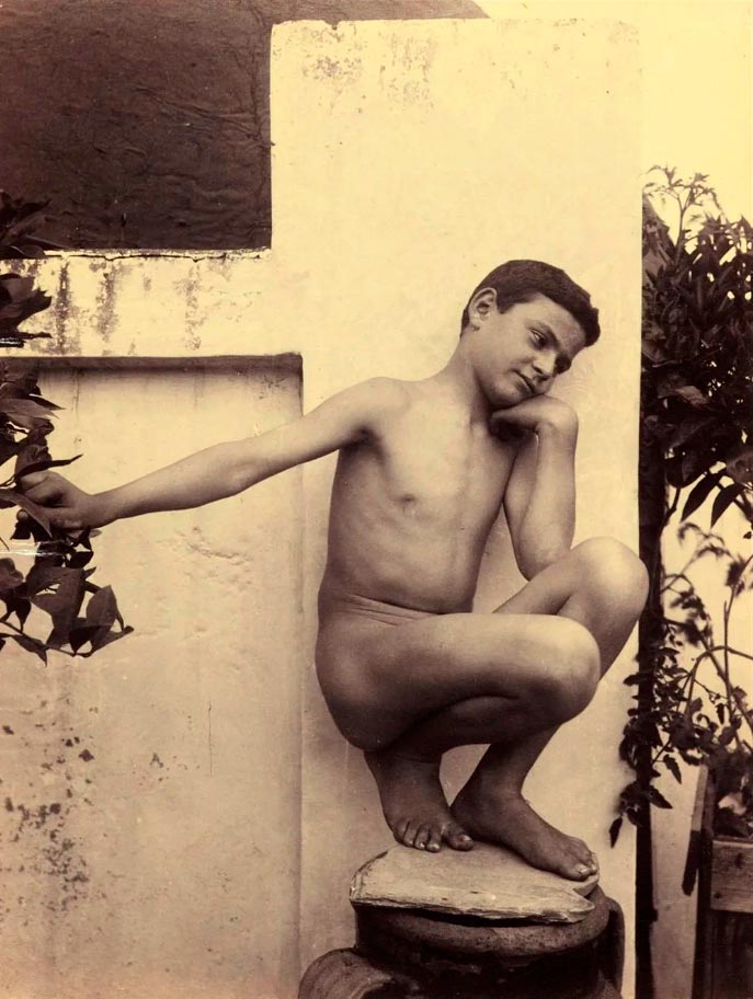 Bambino napoletano nudo su una giara (Обнаженный неаполитанский ребенок на кувшине), 1890s
