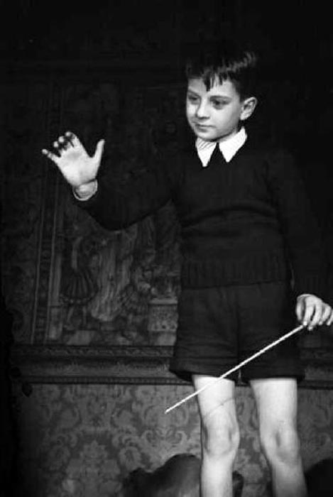 Scuola di musica. Bambino si esercita da direttore di orchestra